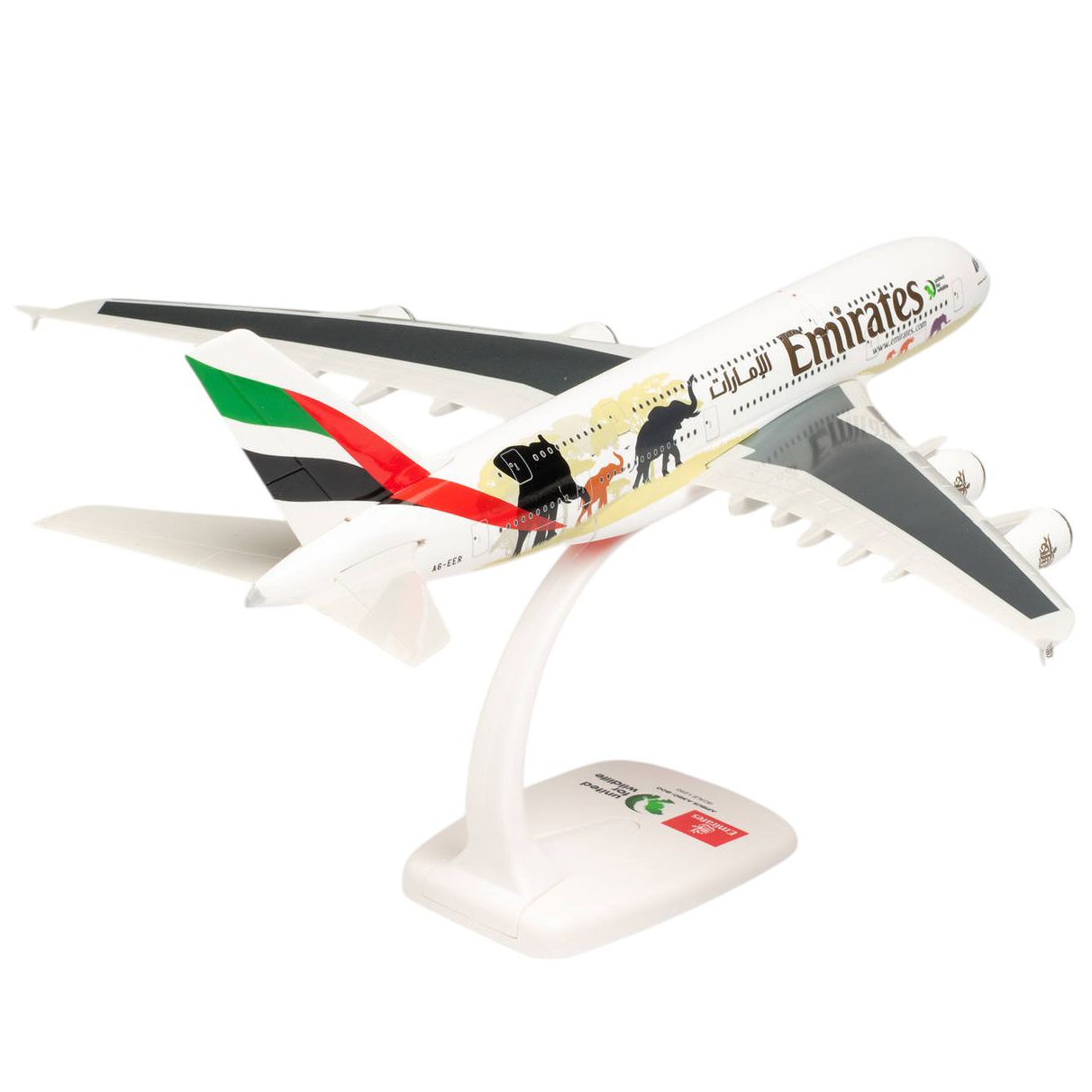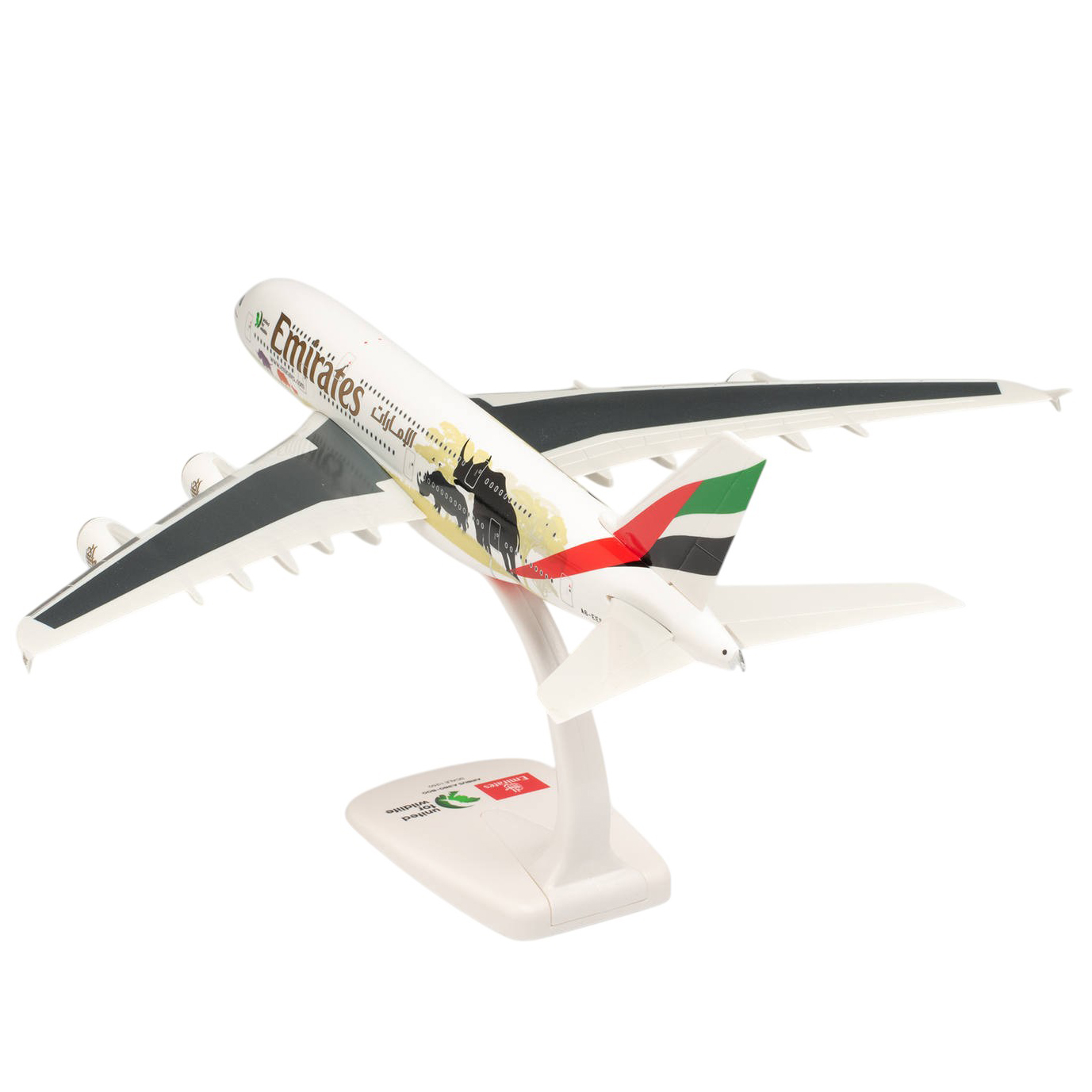 Model samolotu AIRBUS A380 linii EMIRATES w specjalnym malowaniu „UNITED FOR WILDLIFE „